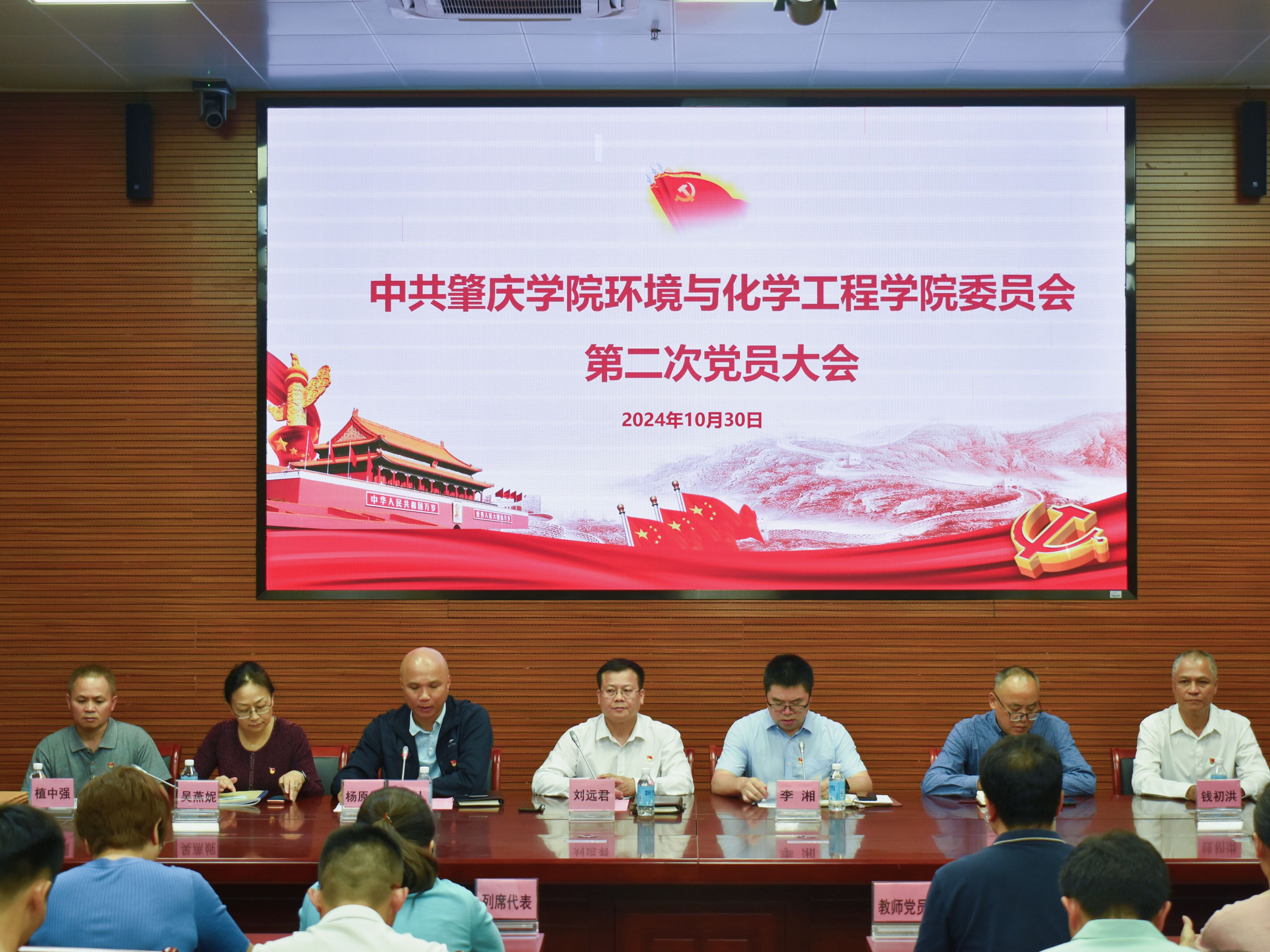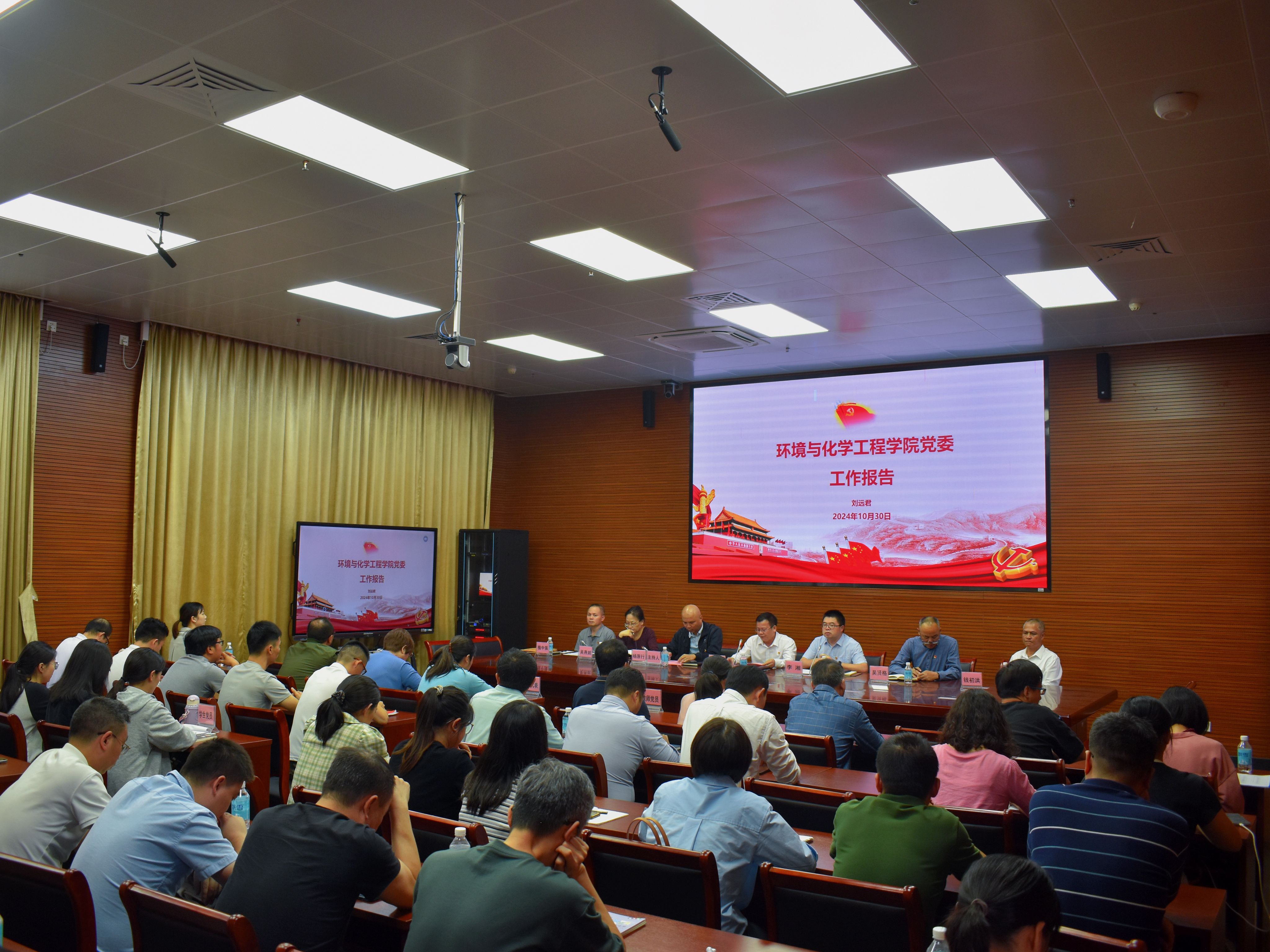 2024年10月30日下午,环境与化学工程公司党委换届选举大会在庄严的国歌声中拉开帷幕。公司党委书记刘远君、经理李湘、副书记杨原行、副经理吴贤格、吴燕妮出席,共 62名师生党员和3名特邀列席教师代表参加了会议,公司党委副书记杨原行主持大会。