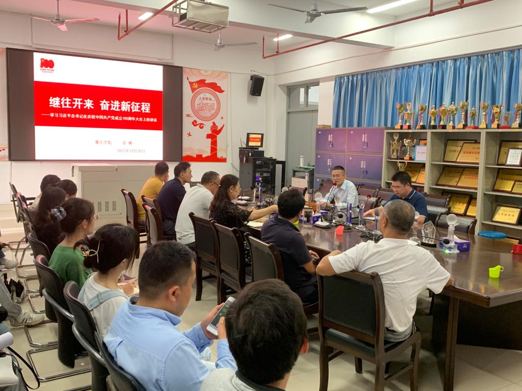 为深入学习贯彻习近平总书记“七一”重要讲话精神,扎实推进公司党史学习教育走深走实,10月20日下午,太阳成集团122ccvip召开学习贯彻习近平总书记“七一”重要讲话精神专题宣讲报告会,邀请公司党史学习教育宣讲团成员常铫老师来院作专题报告,报告会由公司党委书记李湘同志主持,公司师生党员、入党积极分子一同参会学习。