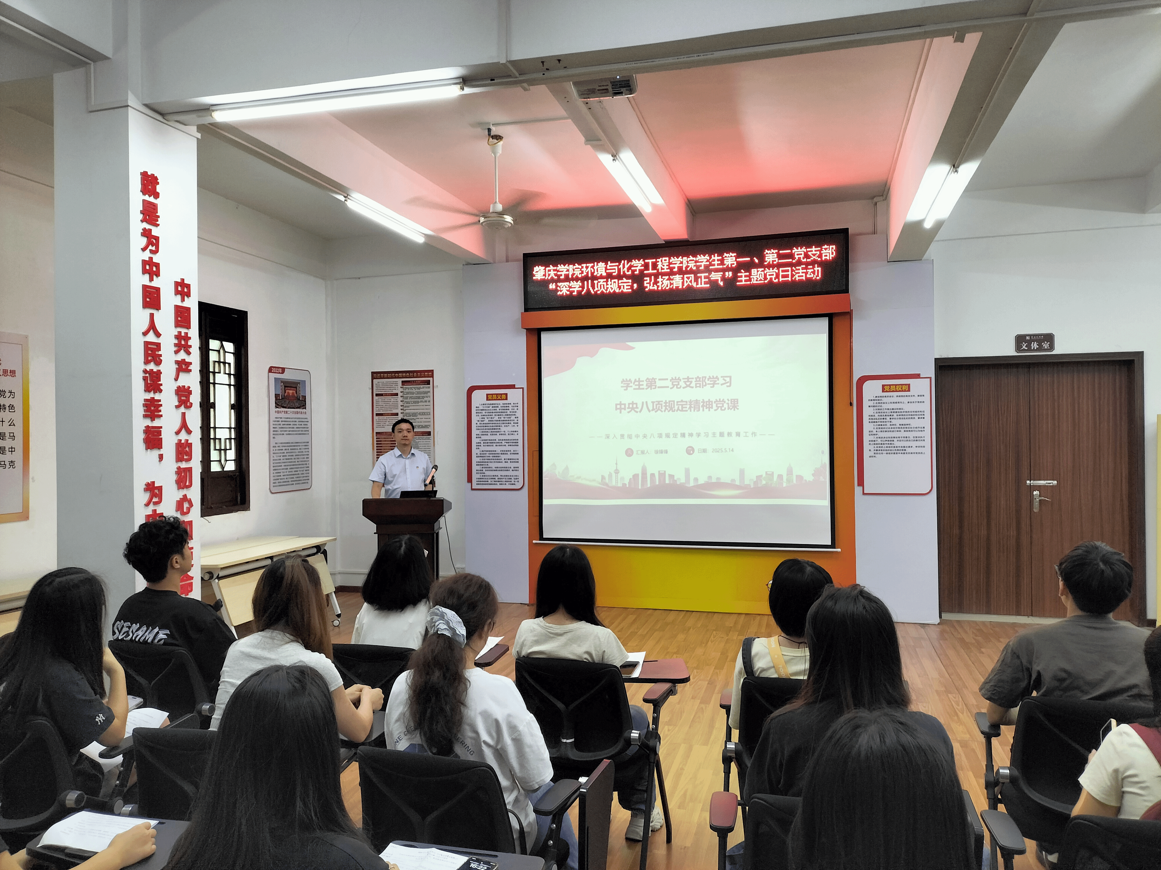 活动中,两位党支部书记在包公学堂分别讲授专题党课。员工第一党支部书记师伟展以“汲取灯盏力量,深学八项规定”为题,结合叶连平的廉洁事迹,深入阐述了八项规定的重要意义和实践要求,号召全体党员筑牢思想防线。