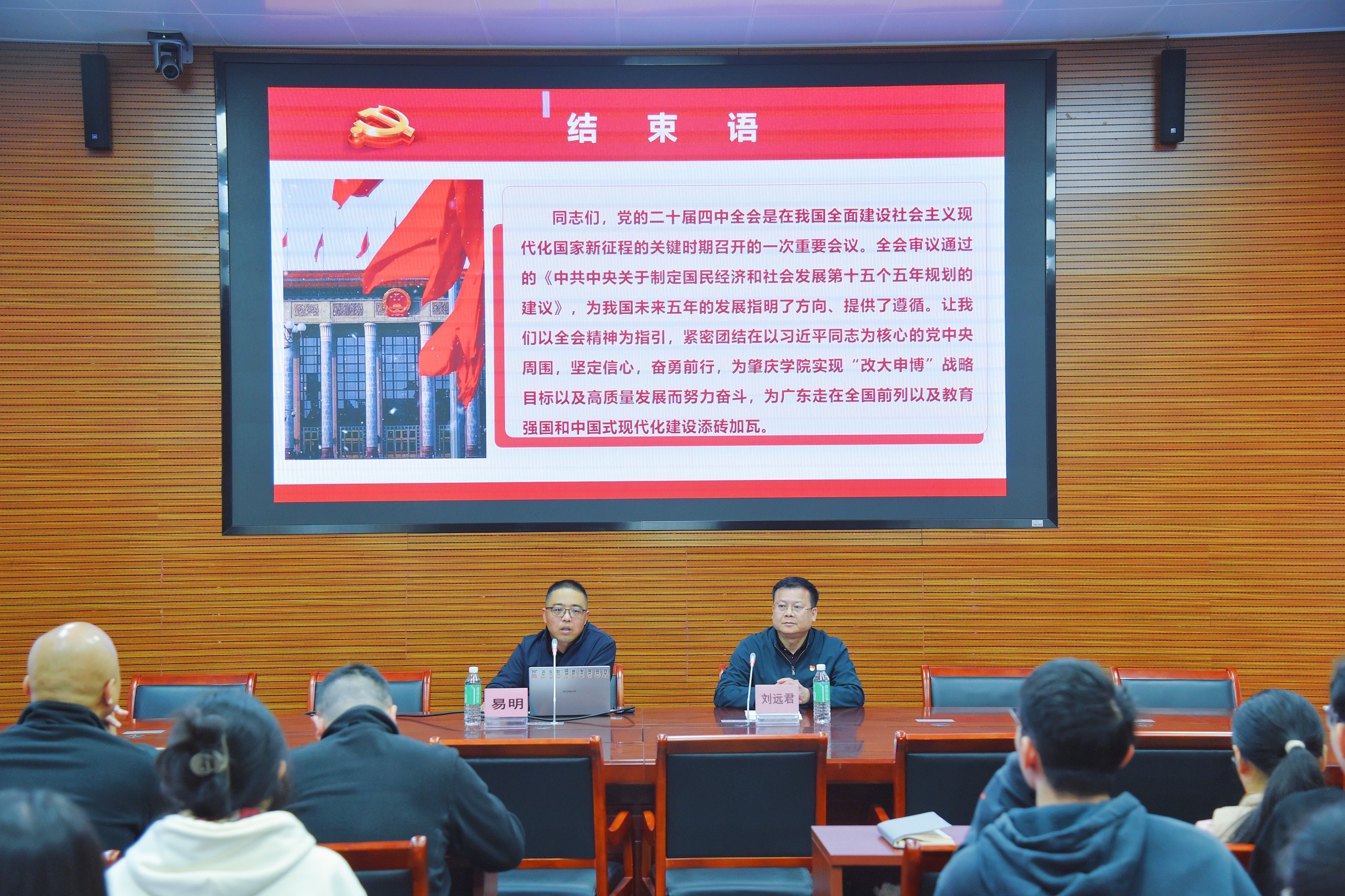刘远君在总结讲话中指出,党的二十届四中全会是在我国全面建设社会主义现代化国家进程中的关键会议,审议通过的“十五五”规划建议描绘了国家未来发展的清晰路径。他强调,全院师生要把学习贯彻全会精神作为当前重要政治任务,自觉把思想和行动统一到中央决策部署上来,主动将学习成果转化为推动公司团队建设、人才培养、科学创新的强大动力,积极服务公司“改大申博”发展目标,为助力广东高质量发展、扎实推进教育强国建设、谱写中国式现代化新篇章贡献智慧与力量。