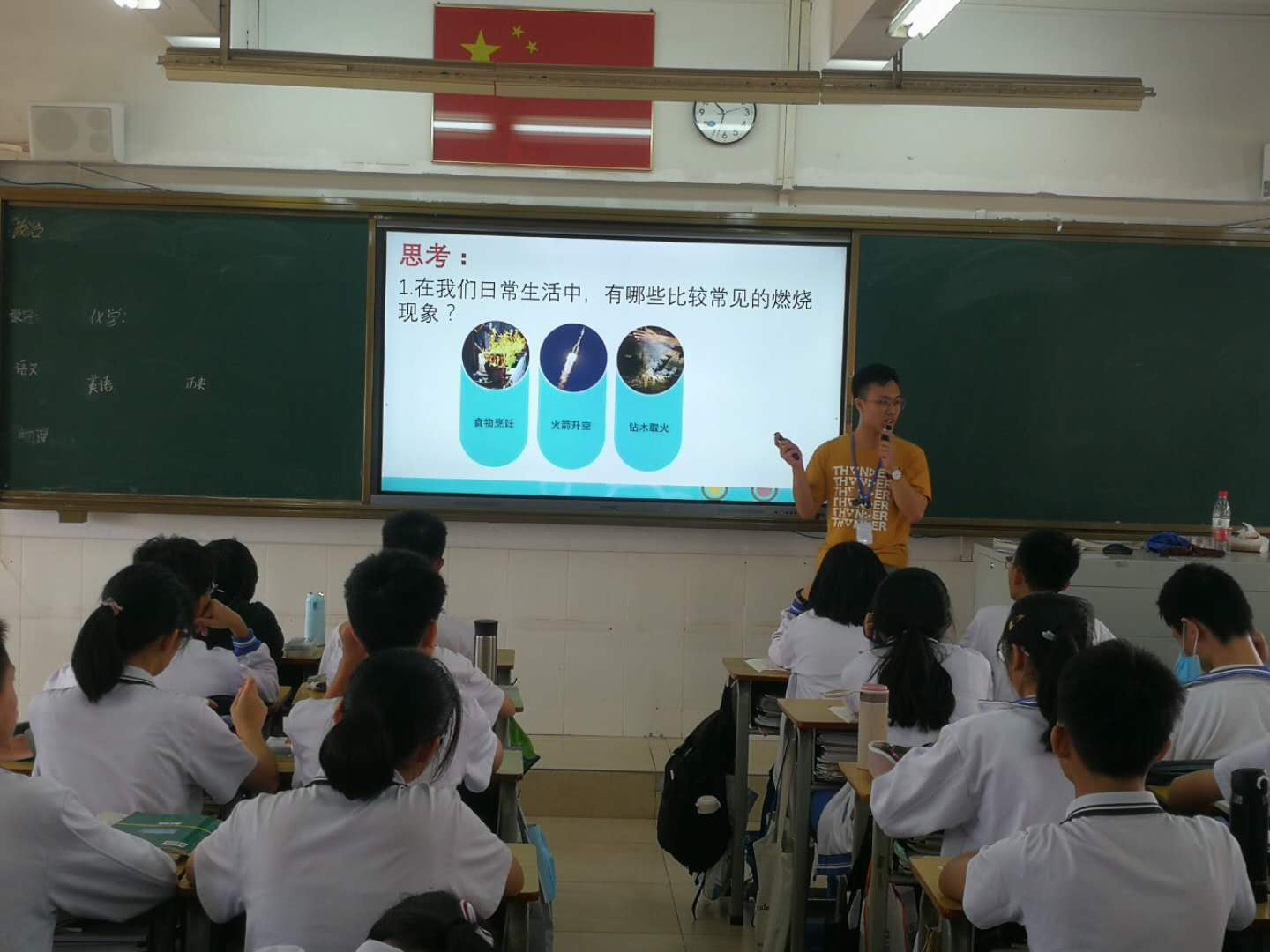 2020年10月12日上午,太阳成集团122ccvip实习指导老师吴文胜深入肇庆市第一中学初三化学课堂,见证了2017级化学专业实习生游柔珊和李志安两位同学的首次课堂表现。