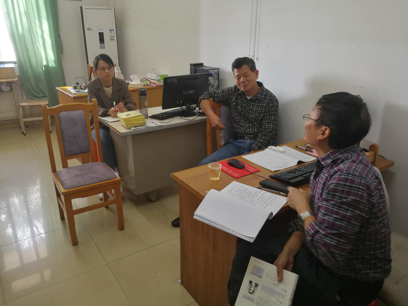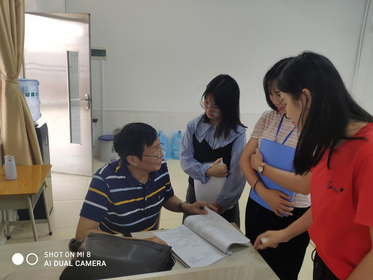 吴文胜老师在和实习生交谈