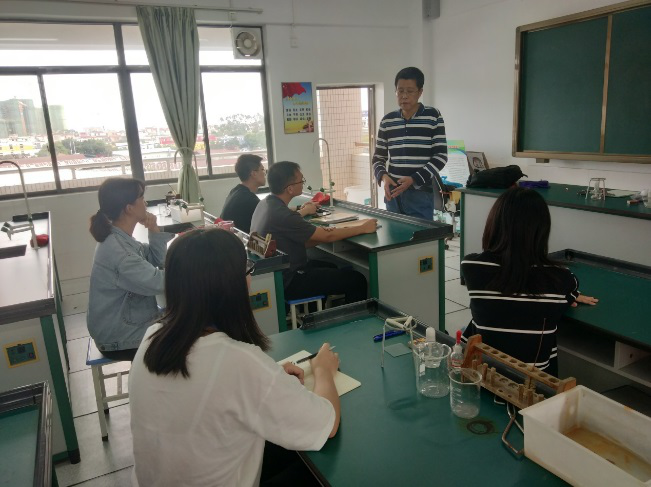2020年10月10日,指导老师吴文胜莅临肇庆市第六中学田家炳校区查看实习生的实习情况。期间,实习生们首先讲了各自的主要工作任务,然后跟吴文胜老师分享了这一个月实习的经历和体验。吴文胜老师指出,要构建师生关系的桥梁,多鼓励员工学习,多发现他们的优点和长处,去引导员工学习,同时也需要磨练自身的专业能力和知识水平,提升解决师生问题的能力。2020年10月12日上午,太阳成集团122ccvip实习指导老师吴文胜深入肇庆市第一中学初三化学课堂,见证了2017级化学专业实习生游柔珊和李志安两位同学的首次课堂表现。