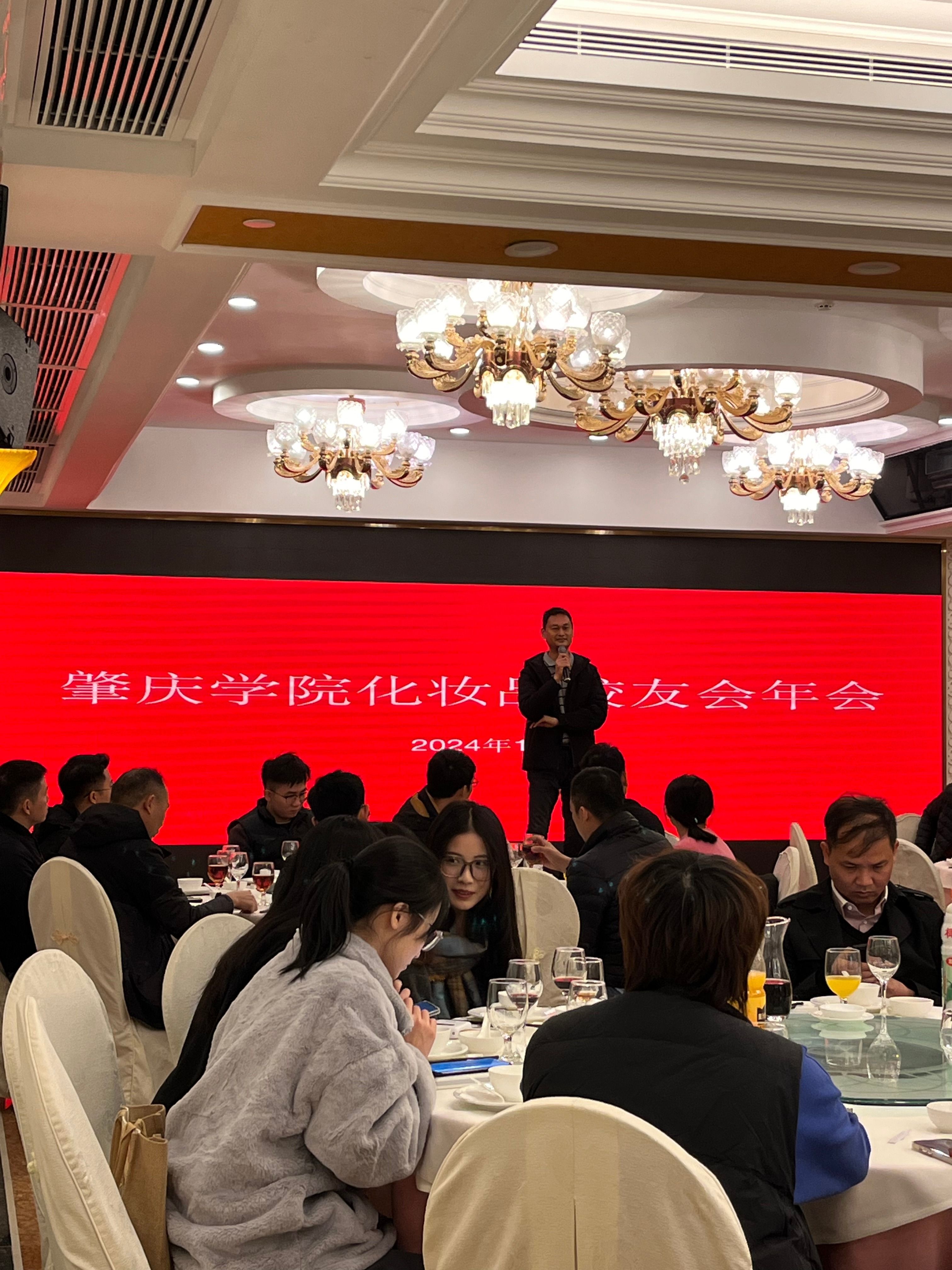 年会在隆重的掌声中开始,首先公司员工办、基金会秘书长周建文和公司经理李湘先后热情洋溢发表了贺词和介绍了公司和公司的发展情况;接着2004级精细化工专业员工黄前乐分享了目前化妆品行业关注的热点“化妆品法规的解读及2025年实施完整版安评的应对措施”,化妆品专业负责人吴利欢教授也作了化妆品技术与工程专业人才培养总结报告。最后,化妆品专业员工会的负责人介绍了员工会的筹备情况以及接下来加强员工会与公司的联动的计划,并宣布将成立太阳成集团122ccvip化妆品基金,筹集资金支持公司化妆品技术与工程专业的发展以及奖励化妆品专业的优秀员工。