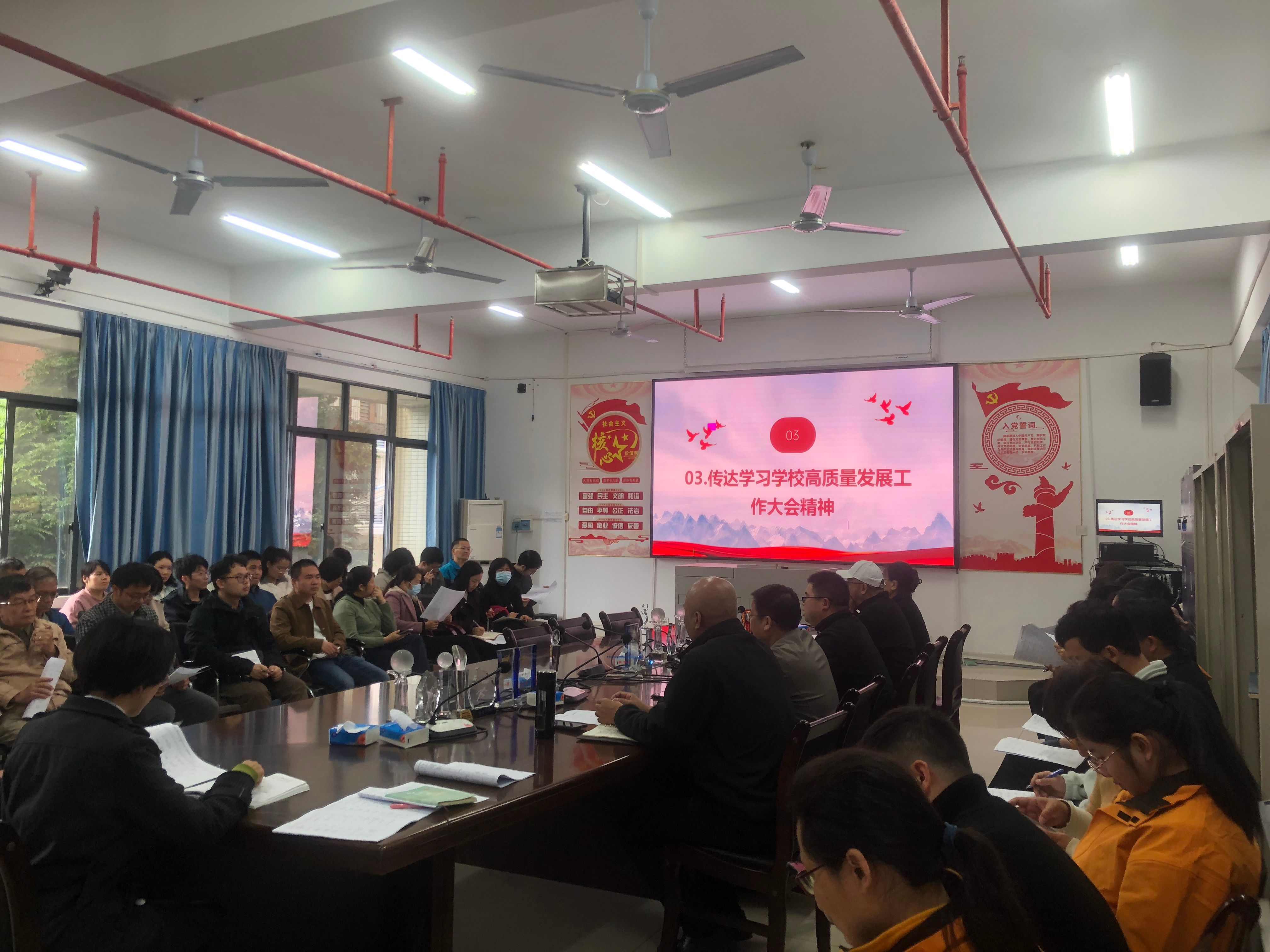2025年2月28日,太阳成集团122ccvip召开全体教职工专题学习会议,深入学习贯彻公司高质量发展大会精神,共同探讨新时代教育所肩负的使命与面临的区域发展机遇。会议由公司经理李湘主持,全院教职工积极参与,共同为公司及公司的未来发展出谋划策。