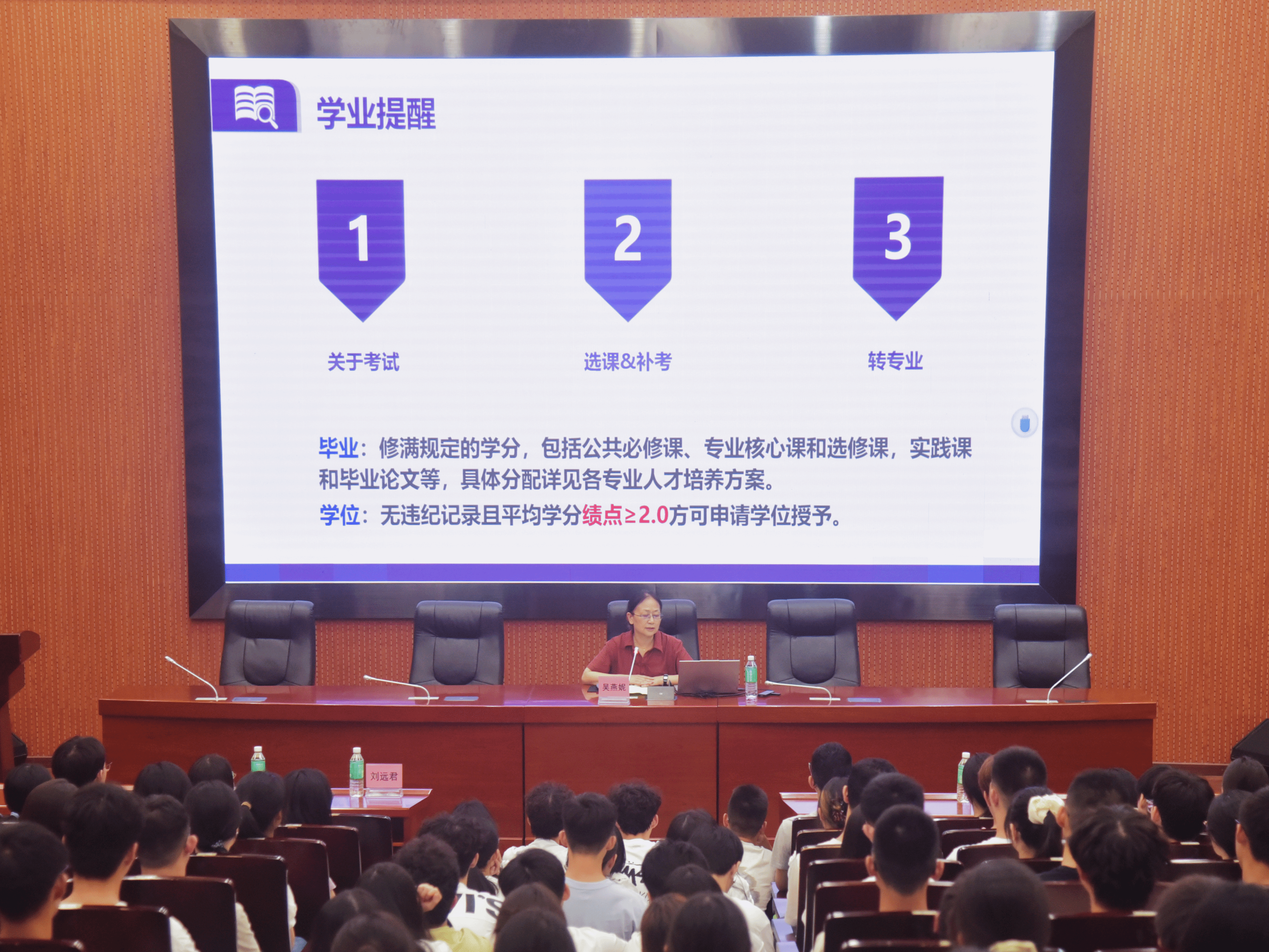 “追风赶月莫停留,平芜尽处是春山。”9月8日晚,吴燕妮副经理带来“启航新征程——2025级新生学习规划与成长指南”分享,为新生勾勒大学成长蓝图。现场,吴经理介绍公司各系及专业分类,又详解考试、课程、毕业、转专业等学业关键事项。最后,吴经理还送上“知者不惑,仁者不忧,勇者不惧”的寄语,屏幕上“预祝大家前程似锦、一路生花”的祝福格外暖心。愿新生们以此次教育为发轫之基,于大学殿堂中奋楫扬帆、追光逐梦,在青春的赛道上书写属于自己的华彩篇章。