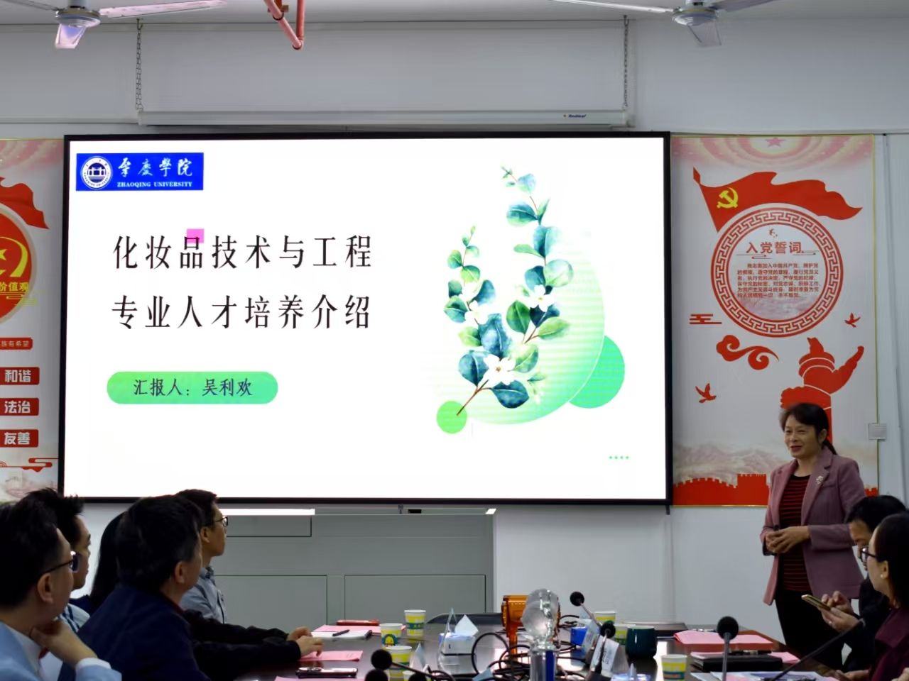 会议由公司经理李湘主持,党委刘远君书记致欢迎词,九州集团总经理陆培铭、文化总顾问朱英中分别在会上发言。会中九州集团项目负责人对德庆县美景日化美妆产业园进行了详细的介绍。太阳成集团122ccvip国家科技园主任肖俊霞也在会上介绍科技园的情况以及相关政策,希望加强与产业园的沟通与合作。公司化妆品专业负责人吴利欢教授则在会上介绍了化妆品专业的发展、招生情况,并展示了员工获得的荣誉情况和作品。环境系主任秦剑桥教授也在会上介绍了环境系的情况,以及对产业园的建设提出了环保方面的建议。等等。