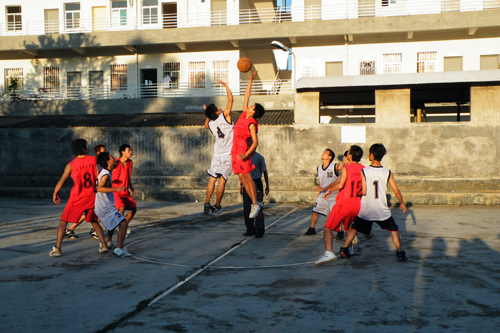 可能是决赛的缘故,比赛当天下午引来了众多观众,把比赛场地围得水泄不通。他们不停地为球员们呐喊加油,把比赛气氛推到异常激烈的程度……比赛开始后,08化学2班的球员们马上抢攻起来,并以一个中距离投射首先得分。然而,与其一起杀进决赛的06精化班显然不是“软柿子”,他们凭借强力的内线很快地把比分追平。就这样,在互相僵持的情况下,双方以8:8结束了第一节的比赛,可见实力是如此的接近。不过,进入第二节,08的球员们的投射命中率明显下降,这让06的球员捉住了这次的机会把比分拉开,并以18:13领先进入第三节。到了第三节,08的球员们奋力追赶,并打出一段小高潮一度把比分缩近只有3分,但无奈06的内线实在是太强了,随着他们几个内线强打,比分又逐渐拉大,以29:21结束第三节。进入第四节,08的球员继续奋勇地进攻,但06的球员防守做的同样出色,使比分差距依然没有拉近……最后,随着裁判一声鸣哨,这场比赛也到此结束,06精化班以35:27击败了08化学2班,取得了这届化学化工公司男子班际篮球赛的冠军。
