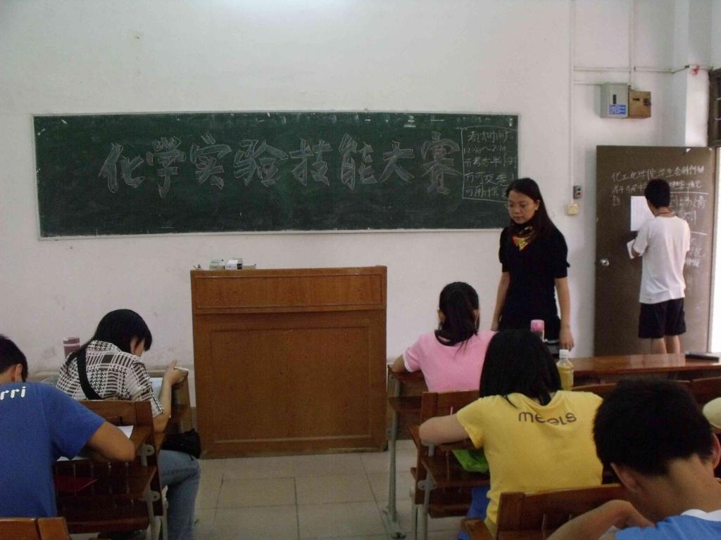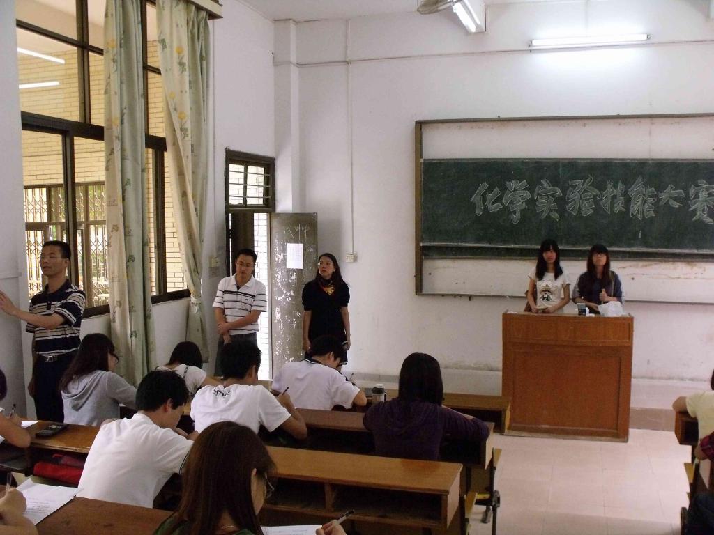 为了突出化学化工公司的特色,提高员工学习化学的积极性及实验动手能力。 5月25日中午,一场由我们公司员工会科创部举办的化学技能大赛在8栋教学楼105到109课室隆重举行。公司党委副书记陈玉华、严子军老师、辅导员刘黎明老师莅临现场巡考。