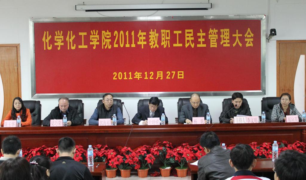 12月27日下午,公司教职工民主管理大会在公司行政楼二楼会议厅隆重召开。出席本次会议的领导有:公司党委副书记叶峥嵘、校工会副主席杨帆、员工处副处长杨雪梅、经理郭海福,党委书记李文明,副经理梁巧荣、郝向英及副书记陈玉华。