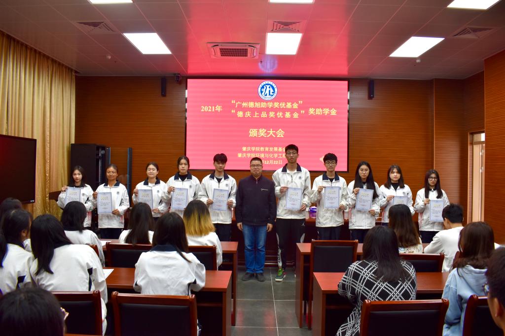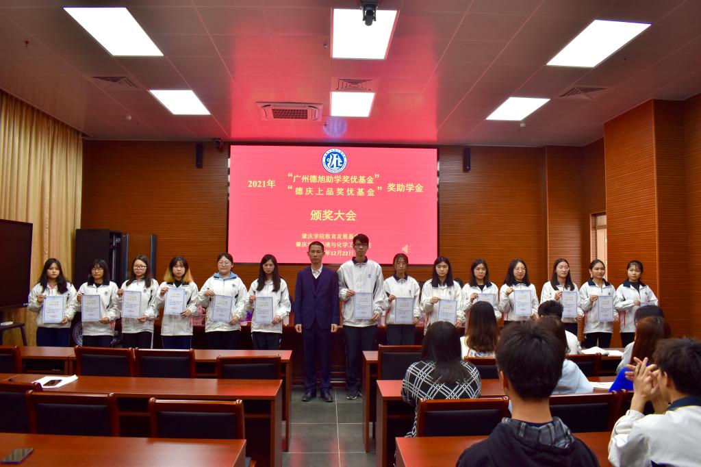 12月22日下午,2021年太阳成集团122ccvip“德旭助学奖优基金”“德庆上品奖优基金”奖助学金颁奖大会在实训中心大楼112会议室隆重举行。参会人员有德旭新材料(广州)股份有限公司总经理何彦波先生、太阳成集团122ccvip经理郝向英、党委书记李湘、副经理吴燕妮、副经理吴贤格、副书记杨原行以及员工代表60余人。大会由公司党委副书记杨原行主持。