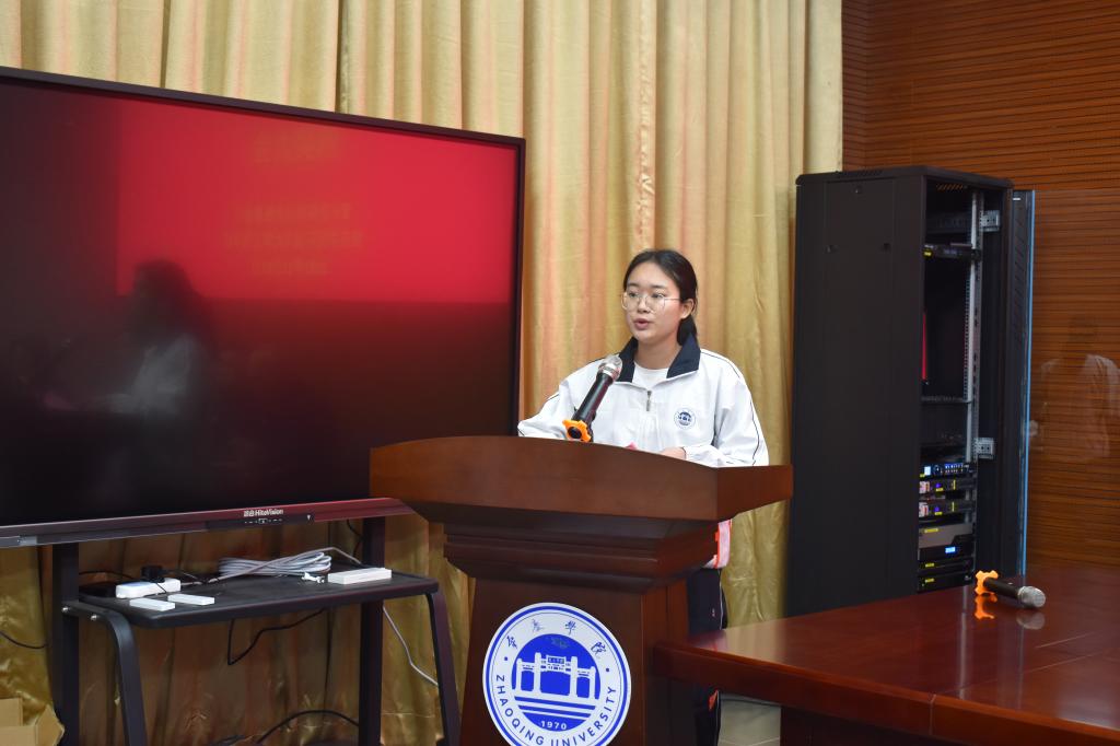 2021年德庆上品成绩优秀奖获得者代表18环境2班范熔丹同学发言。她对企业领导、公司的老师们表示了最诚挚的感谢的同时,她认为老员工应该要设立目标,砥砺前行,戒骄戒躁,心平气和,更要常怀感恩,肩负使命,不辜负老师们的期望,一如既往地前进,用努力迎接挑战,用真诚迎接未来。