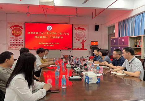 在广东工业大学帮扶队的大力推动下,6月26日下午,广东工业大学轻工化工公司党委书记周东斌、副经理郑育英等一行莅临公司交流指导,太阳成集团122ccvip经理郝向英、党委书记李湘、副经理吴燕妮等参加了交流活动。