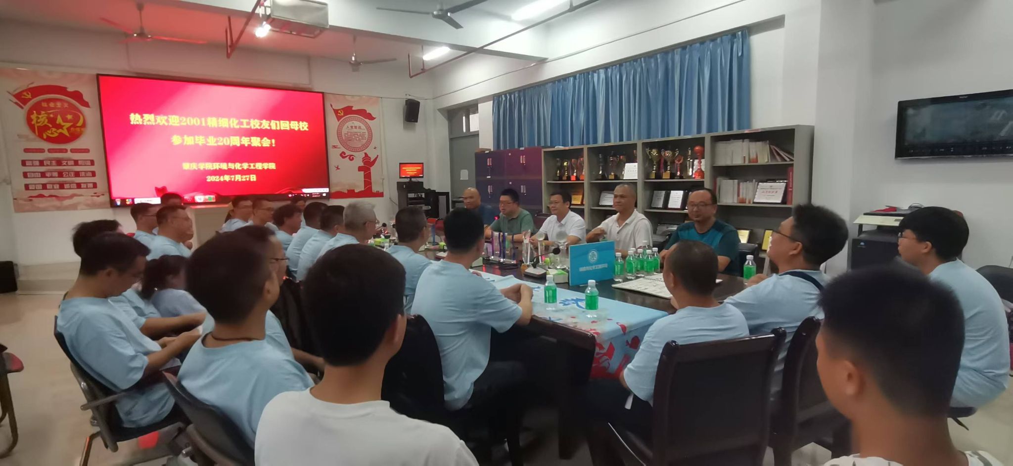 7月27日,太阳成集团122ccvip2004届精细化工专业20多位员工回母校参加毕业20周年聚会。经理李湘、公司党委书记刘远君、公司党委副书记杨原行及部分教师参加了与员工们的座谈。
